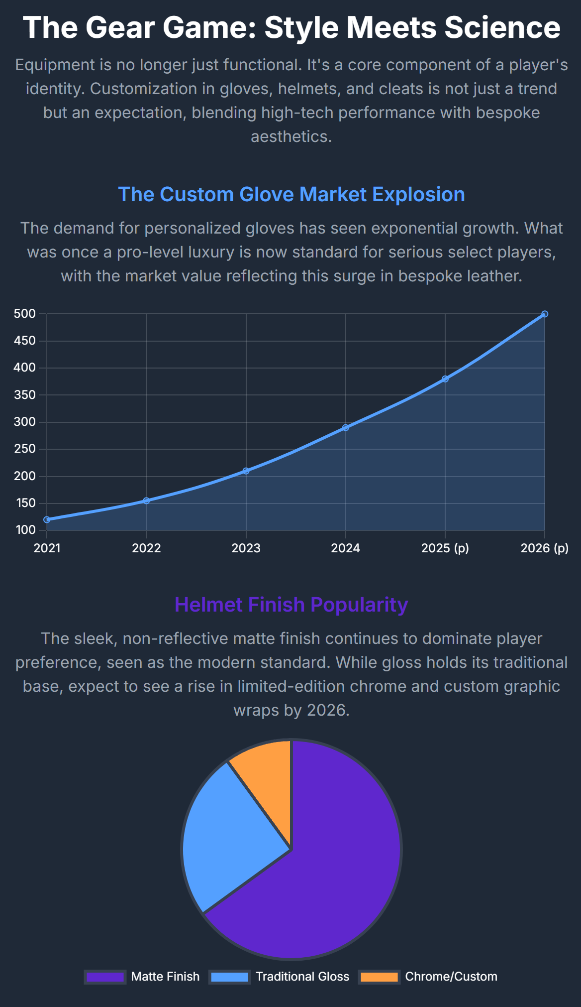 - Batting Gloves – Long-cuff styles dominate, often custom to match cleats or team colors.