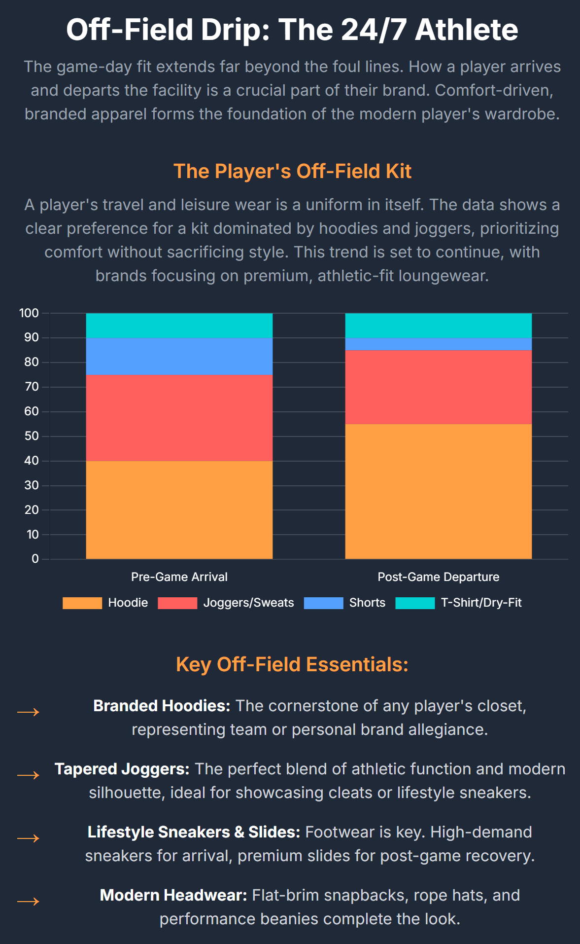 Off the field, players are embracing a clean, comfortable, and athletic aesthetic.